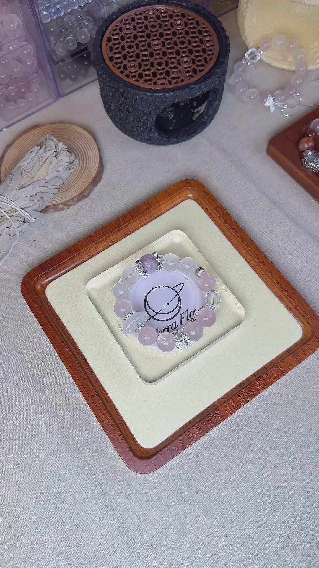 Each bracelet is carefully handmade in London using 100% natural crystals, responsibly sourced and thoughtfully combined. Our design process blends intentional crystal pairings with elegant forms—pieces meant to be lived in, aligned with both body and spirit.
